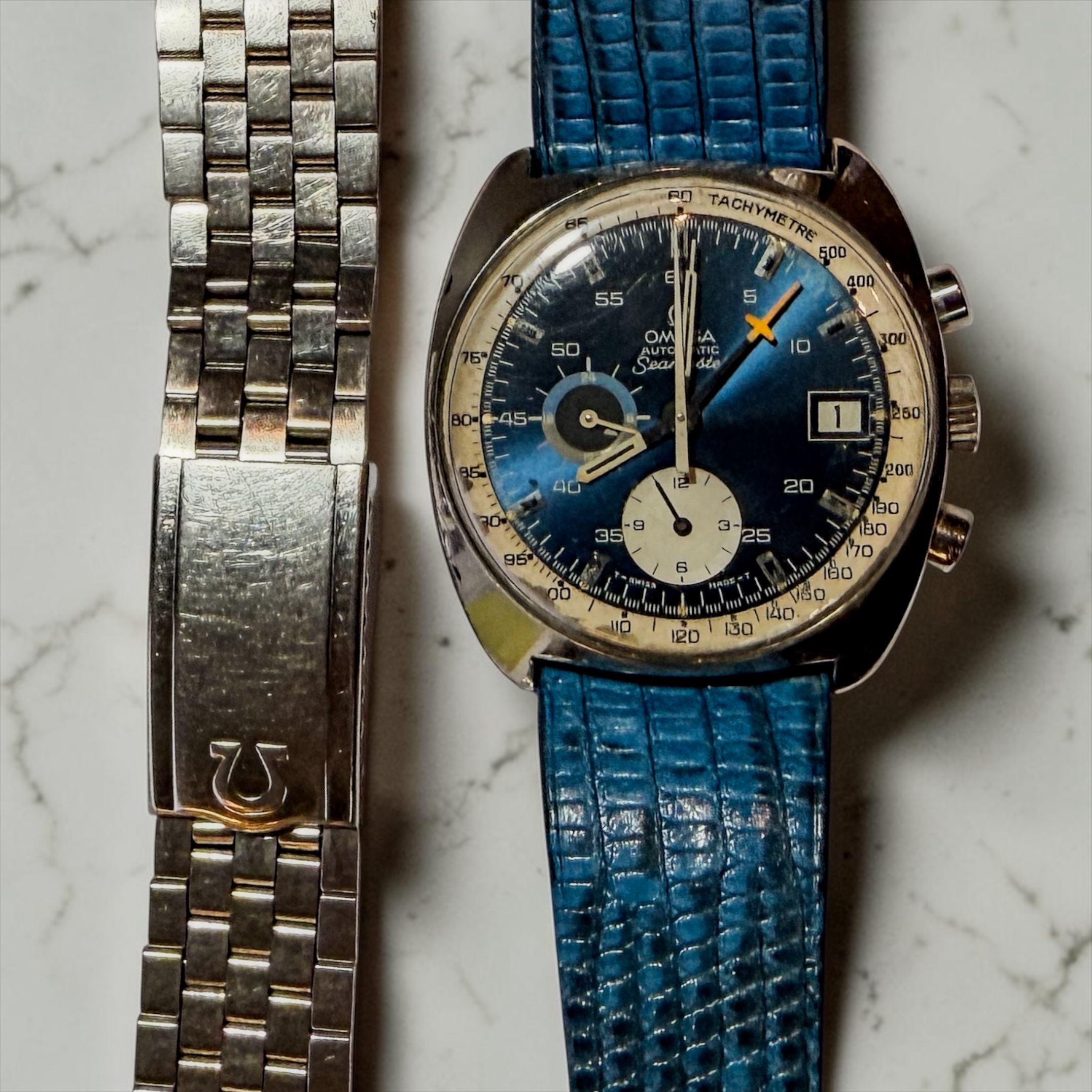 Início Relógios Omega Seamaster Jedi Cronógrafo, Anos 70 , Pulseira Extra e Raridade!